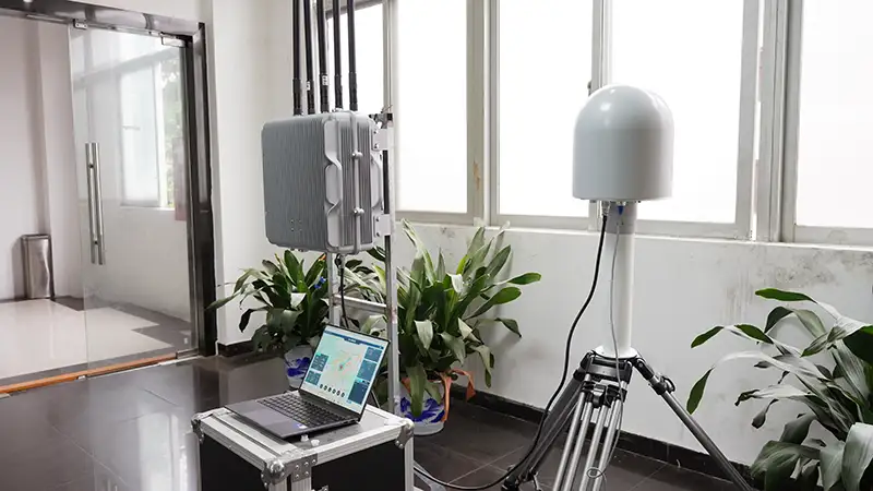 Σύστημα άμυνας ασφαλείας 5km Drone Detects Ανίχνευση UAV σαρώνει το εύρος συχνοτήτων 700-6300MHz και ανιχνεύει drones σε απόσταση έως και 5km (ρυθμιζόμενη απόσταση μέσω κεραίας). Ο ανιχνευτής αποκωδικοποιεί τα σήματα DJI FPV, εντοπίζει τη θέση του πιλότου, διαχειρίζεται λίστες επιτρεπόμενων/μπλοκ και παρέχει τροφοδοσία βίντεο για οπτική επιθεώρηση. Ο ανιχνευτής έχει κάλυψη 360° και μπορεί να συνδεθεί γρήγορα με παρεμβολές για να ανταποκρίνεται γρήγορα σε απειλές, επιτρέποντας παρακολούθηση σε πραγματικό χρόνο και έξυπνα αντίμετρα σε περιοχές υψηλής ασφάλειας.